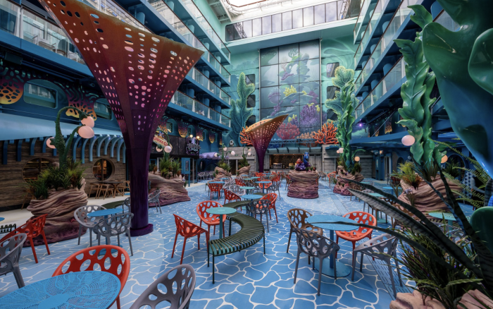 Hungry? You may want to head to Disney Discovery Reef, themed to a variety of underwater Disney and Pixar films. This is home to Palo Trattoria and Mike & Sulley’s Flavors of Asia, two of the ship’s signature fine dining restaurants, as well as Bewitching Boba and Brews, and Taverna Portorosso, a sports bar styled after the coastal Italian village featured in Disney and Pixar’s Luca.