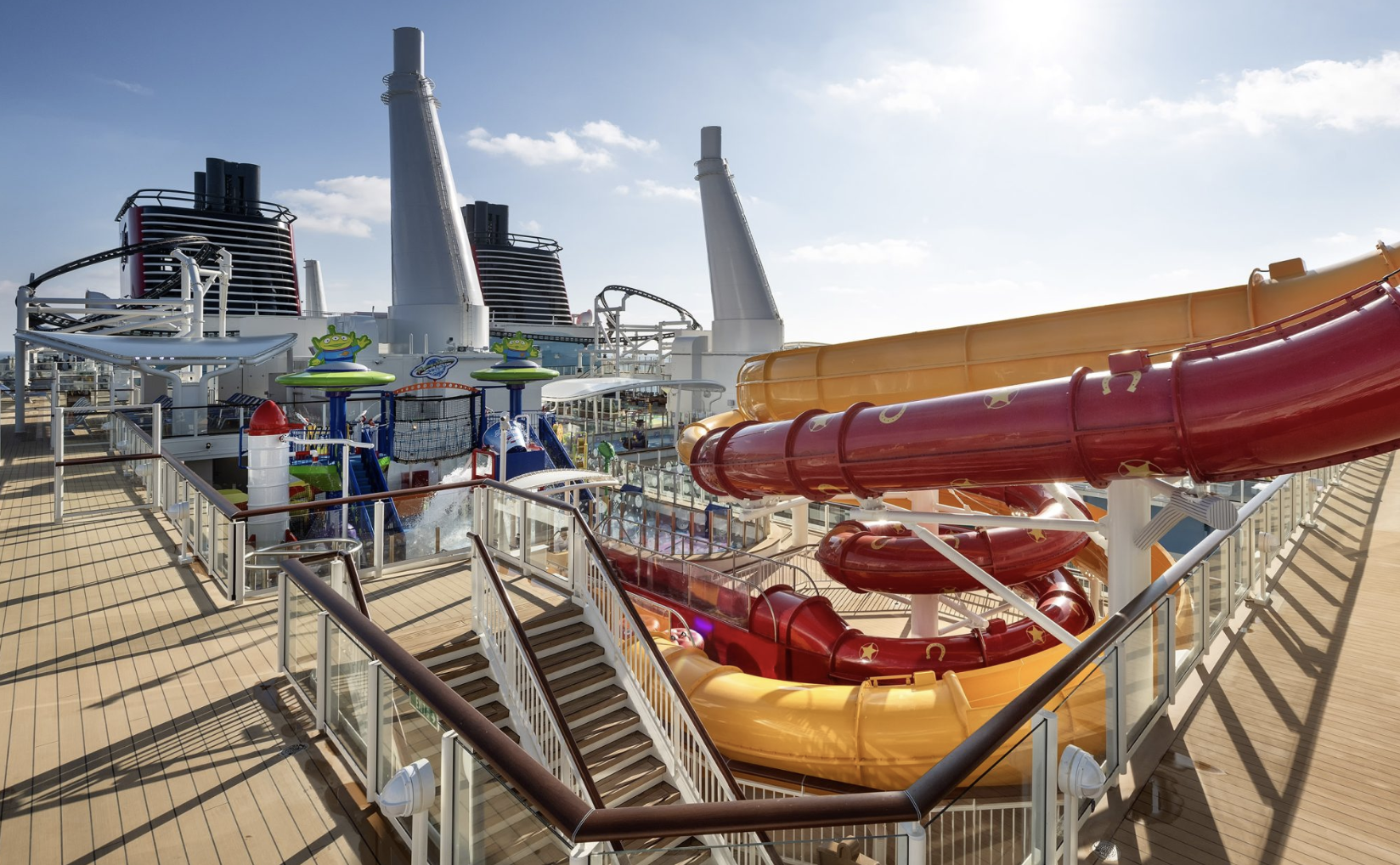 Last but not least, we’ve got Toy Story Place, a water play area inspired by the beloved Pixar films. Here, there is a large family pool, multiple whirlpools, towering water slides, and interactive splash pads.