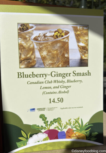 The Canada Popcorn Cart returns to the Flower & Garden lineup this year with a new cocktail — the Blueberry-Ginger Smash made with Canadian Club Whisky, blueberry, lemon, and ginger. This is $14.50.