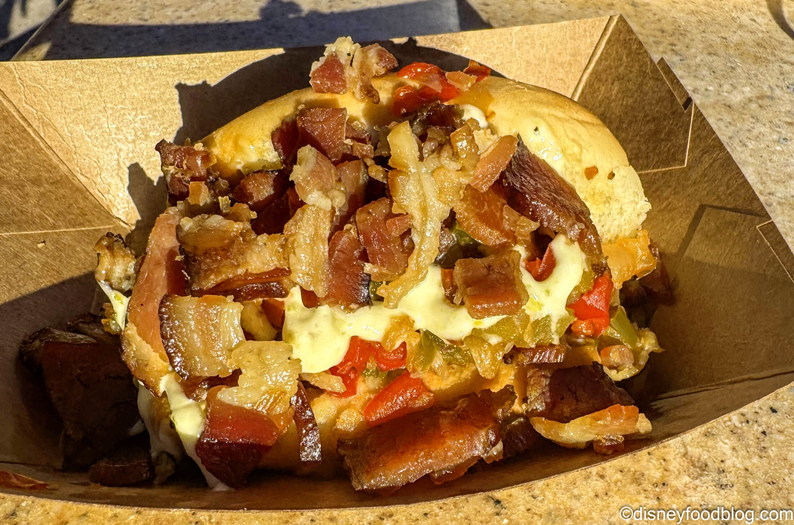 We can see why this one is a returning favorite, especially since it’s not too heavy. The bun was nice and fresh, the hot dog itself was cooked well, and our only real complaint is that there were SO many bell peppers, which made it hard to taste the bacon. The jalapeño mayo definitely had a kick to it, so keep that in mind!