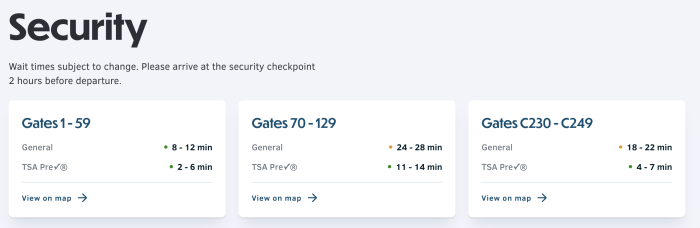 Some airports may even feature live updates about the current TSA wait times, like Orlando International Airport (MCO), which you can check out right here.
