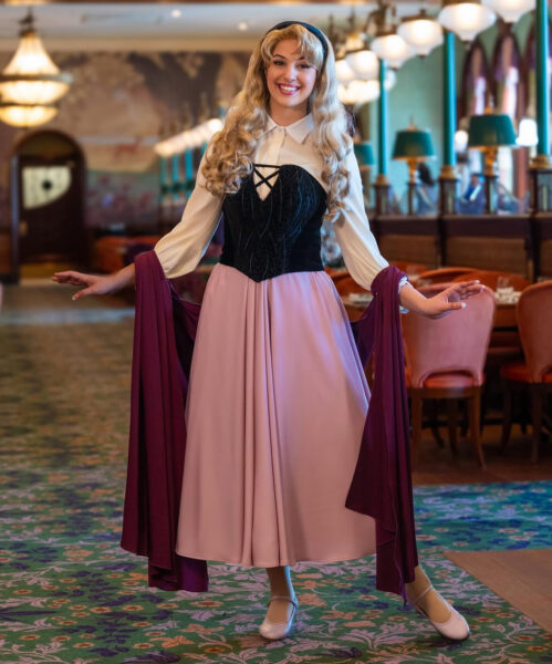 This means that Princess Aurora is in her Briar Rose dress!