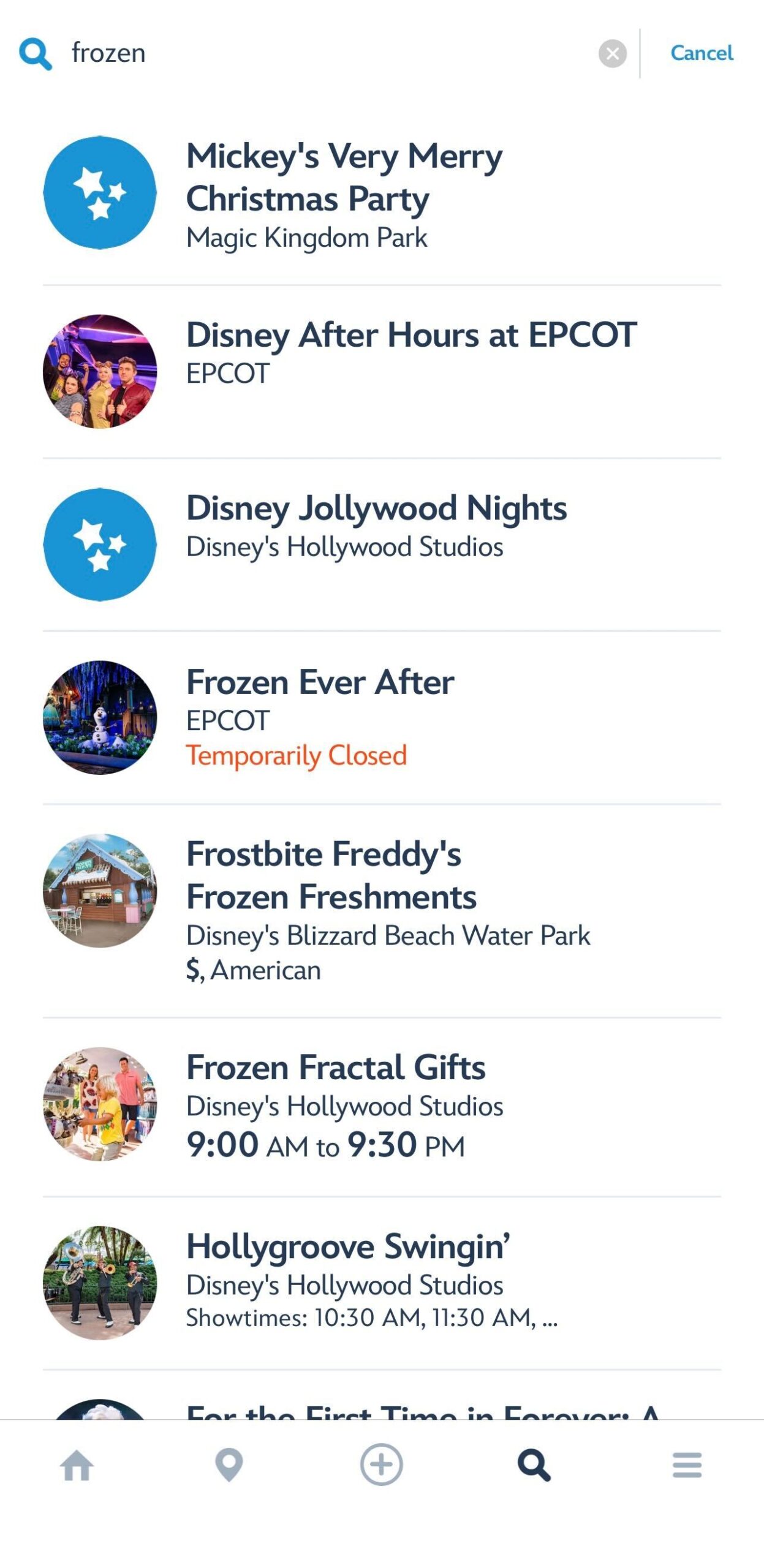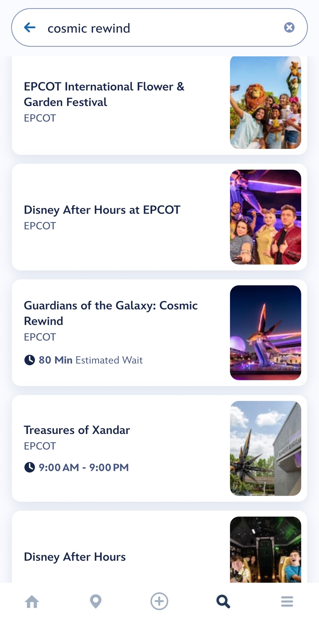 The visual look of the search interface has been overhauled, with the images made large and changed in shape from round to rectangular. We did note some occasional glitches with the search, as well as the tendency to list events before the attraction itself.