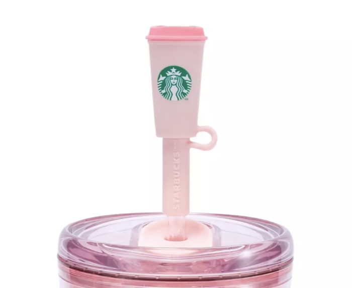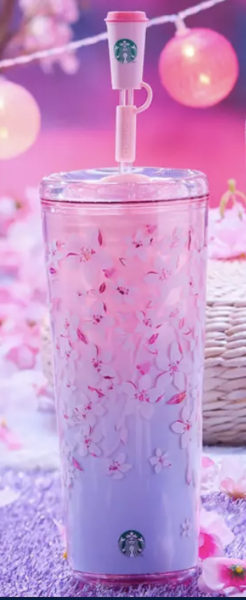 This 24-ounce exclusive acrylic tumbler collaboration features a pink and blue ombré color scheme decorated with falling cherry blossoms and subtle Mickey icons woven into the floral pattern. Like other Starbucks tumblers, the cup is double-walled to keep drinks cool for longer, and even includes a Starbucks coffee cup straw-topper.