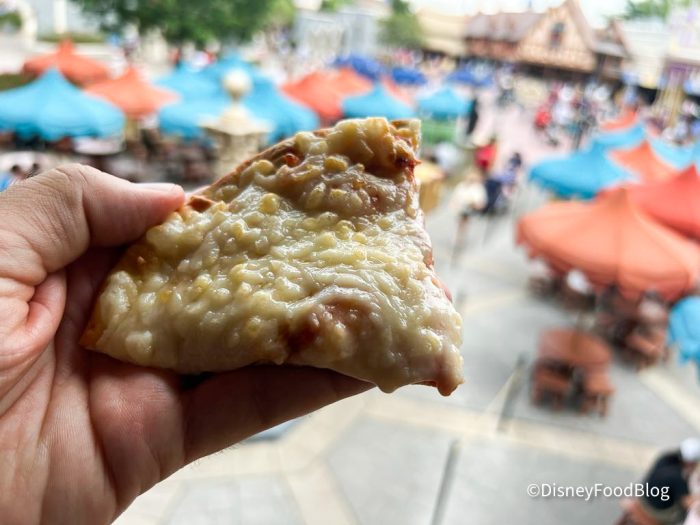 Unless you already know you enjoy this specific style of plant-based cheese, we wouldn’t recommend ordering this pizza. The texture alone makes it a tough sell, and even with extra toppings, we couldn’t save it. There are simply too many better dining options in Magic Kingdom to spend your money here.