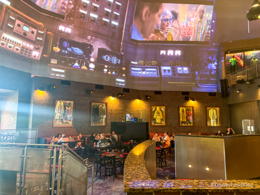 When you make it to the dining area, you’re surrounded by big screens and a massive seating area. This is probably the largest seating area of any restaurant in Disney World.