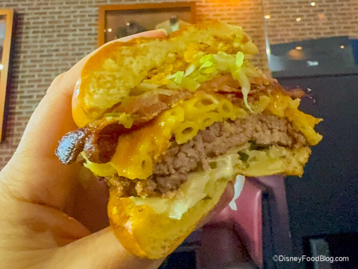 There’s even more melted cheddar ON TOP of the mac and cheese, because, well, you can NEVER have too much cheese. You can still taste the burger, though, under all those toppings, and there’s a nice crispiness that comes from the onion straws. This is a solidly good burger.