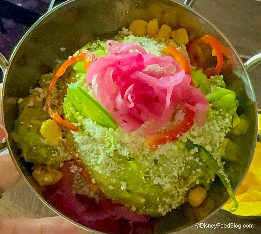 Okay, moving on…the Guacamole was OUTSTANDING enough to make us forgive the shrimp. It has all these beautiful layers of ingredients and flavors, including guacamole, roasted corn, serrano peppers, and cotija cheese. They’re served with corn tortilla chips, but we were pretty much dipping almost everything in the sampler in it.