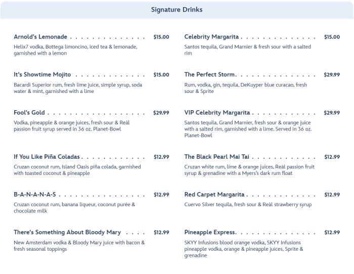 …as well as some Signature Cocktails.
