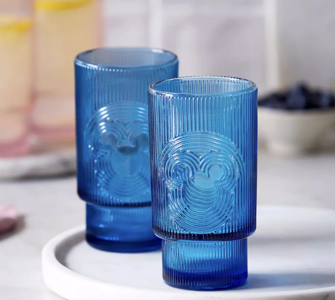 If you love the design of the tumblers but want a different color, look no further than the Mickey Mouse Blue Icon Glass Tumbler Set! This has the same all-around ridged design as the pink, but since the color is different, the Mickey icon does stand out a little bit more here, which may be more what you’re looking for in your kitchen.