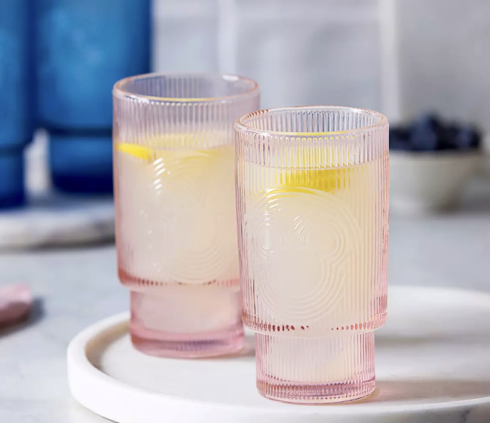 Finally, in the pink collection, we’ve got the Mickey Mouse Pink Icon Glass Tumbler Set! It comes with two tumblers, both with an all-around ridged design that makes the Mickey icon stand out a bit more on the sides. However, it’s still subtle, which we really love.