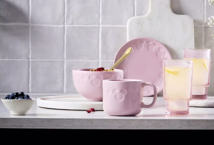 If you want some new bowls to match your new mug, the Mickey Mouse Pink Icon Bowl is also part of the new collection. This is the same pink color, is also dishwasher and microwave-safe, and has the same Mickey emblem pattern on the sides of the bowl.