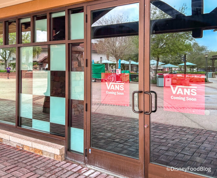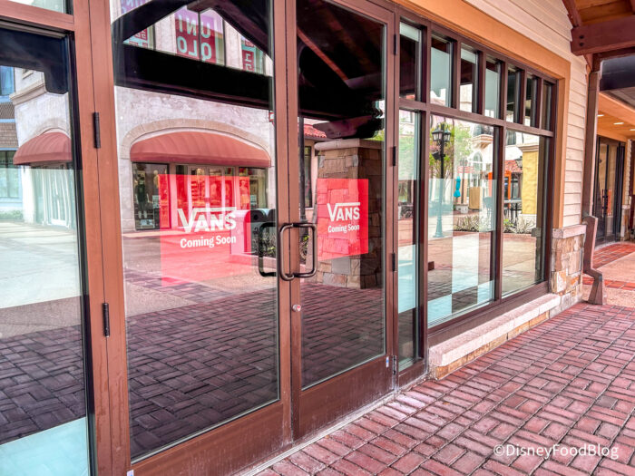 When we stopped by, we spotted signage up with the Vans logo along with some signs that said “Coming Soon.” As of now, there’s no official opening date for this spot, but we’ll be keeping an eye on it. The new store is located in Disney Springs’ Town Center, right between the Harley Davidson and Levi’s stores.