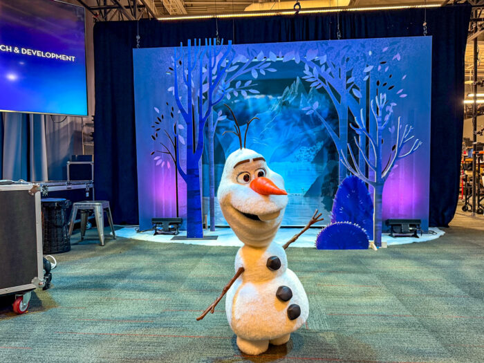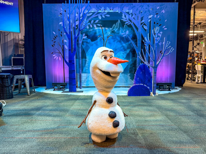 Disclosure: In nearly all circumstances, Disney Food Blog writers and photographers pay full price for their own travel, hotel, food, beverage, and event tickets. We do this because it’s important to us as journalists to ensure not only that we give you unbiased opinions, but also that you can trust us to do so since we’re paying our own way. On rare occasions, when we are invited by a company to attend a preview as media, and when we choose to accept that invitation, we will always make you, our readers, aware of that situation. Today, we were invited by Disney to attend their media preview of the Olaf Animatronic. Note that when we attend events as media we are 1) Not required to review that event/food on any of our channels, and 2) Not required to review that event/food favorably. You can always count on DFB to give you a 100% unbiased and honest review of any event that we attend, food that we eat, or beverage that we drink. You can see more in our Disclosure Policy. Thank you for reading. — AJ