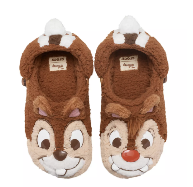 If you can’t get enough of these troublesome chipmunks, the Chip ‘n Dale Fuzzy Clogs for Adults by Crocs could not be more perfect for you. Now, these are the fuzzy Crocs, which means they’re not as great for bad weather outside. You’ve got Chip on the right and Dale on the left, and the shoes are complete with their fuzzy ears up front and tails at the back of the shoe. They also come in 10 sizes, from M4/W6 through M13.