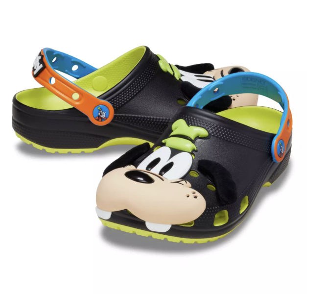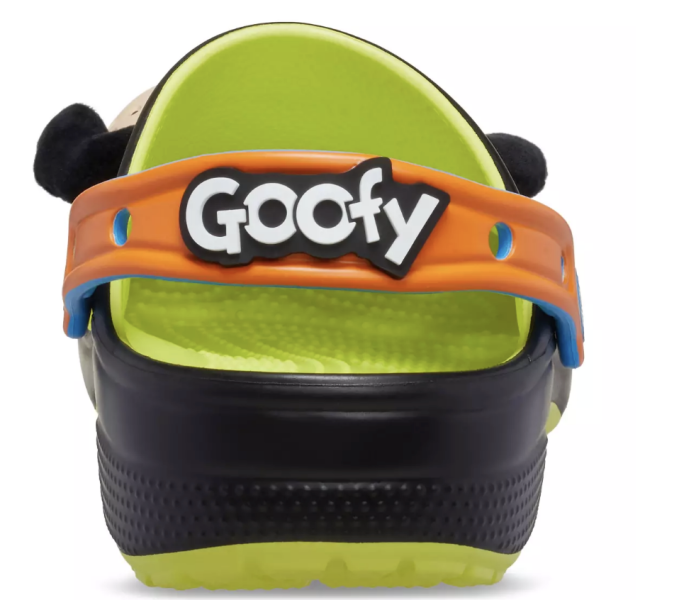 Lovers of the one and only Goofy can’t miss the Goofy Clogs for Adults by Crocs that are now online! They come in sizes as small as M4/W6, and go up to a M13 (10 sizes total). You’ve got Goofy’s face on the very front of the black front of the shoe, while the inside is green. The strap on the back has Goofy’s name on the back, and his face on the side buttons, and is both orange and blue. There are a lot of colors going on, but we love it!
