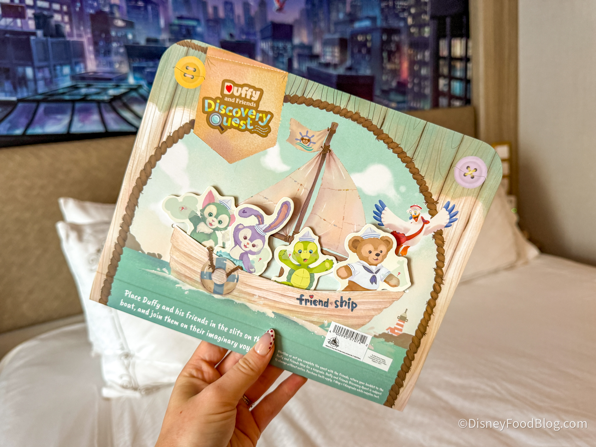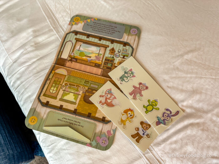 You’ll follow clues to locate missing items for Duffy and his friends after buying a guide at the Duffy and Friends shop. This is an additional charge of $12.99 USD, but we thought it was so fun. It was like an EPCOT Scavenger Hunt, but better! Inside the map, you’ll find Duffy’s cottage with cutouts of each of his friends.