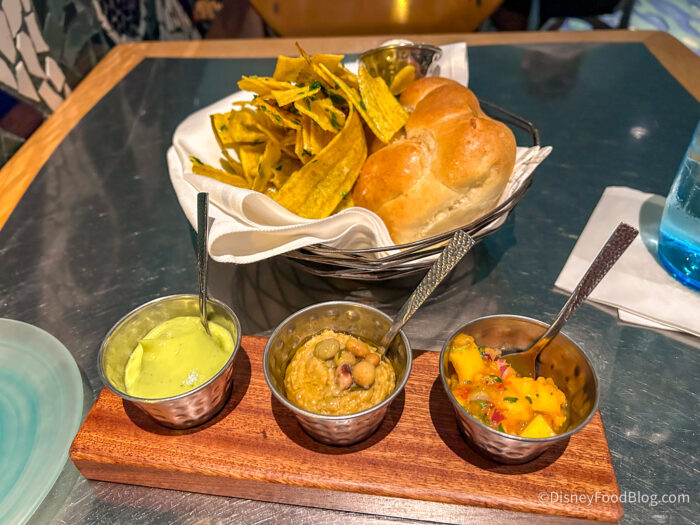 We started off with the Pineapple-Coconut Bread and Plantain Chips, which are brought out to every table. We really enjoyed that the chips had some sort of glossy cilantro oil on them, which paired very well with the different dips. There was a guacamole, a refried bean dip, and then pico de gallo. The guacamole was the smoothest we’d ever had, and it was our favorite, while the pico de gallo was solid and our second favorite, and the refried bean dip wasn’t bad, just not our favorite. As for the bread itself, it was incredibly soft, and the butter was where the coconut flavor really came in. We unfortunately couldn’t taste the pineapple at all, but even so, this was still a very enjoyable starter.