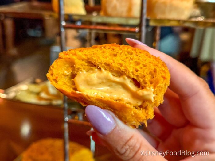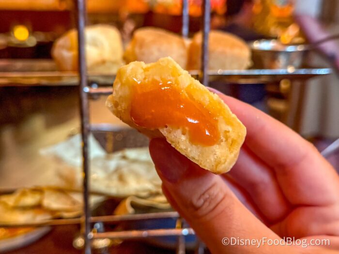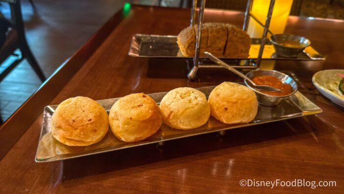 The final one had a strong hit of spice! Even our server warned us before we dove in, so we would save this one for last since the spice lingers. The bread was seasoned and soft, and the sauce was on the runnier side, but we’re always happy if we can find real spice at Disney World