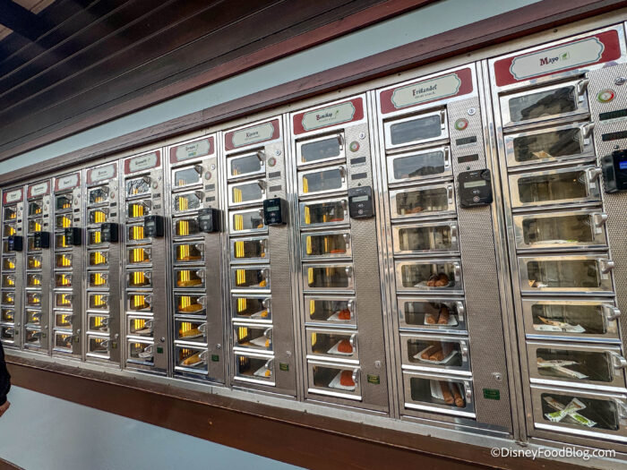 They actually have these giant walls of snacks where you tap your card and then get your snack out of the wall. We were super impressed by this feature since it’s unlike anything we’ve seen in theme parks we’ve visited before.