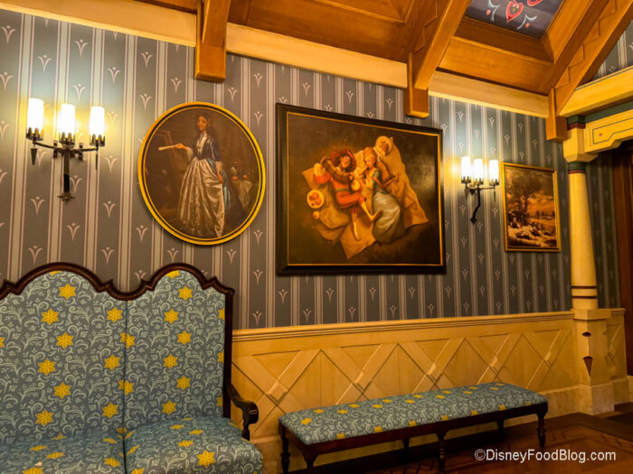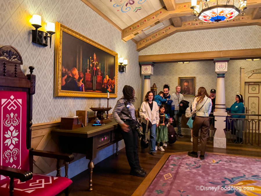 This version of Arendelle also includes special meet and greets…oh, and animatronic Olaf!!! You can meet Anna and Elsa inside Arendelle Castle at the Royal Encounter. Yes, you can go INSIDE Arendelle Castle! The waiting area of the castle has so many nods to the Frozen movies.