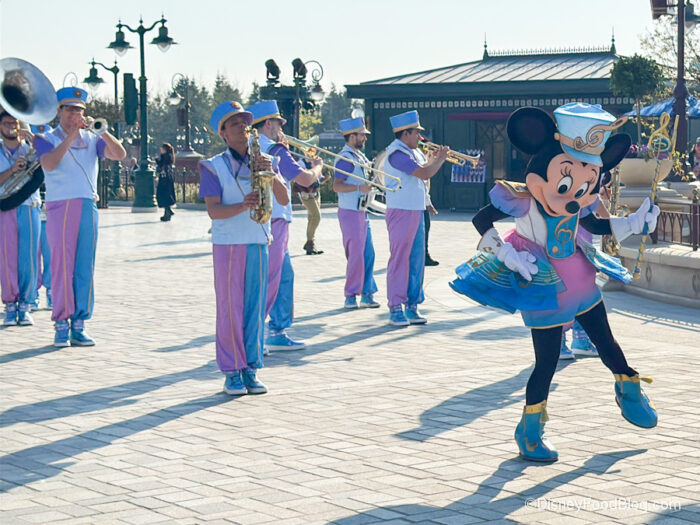 Then we saw ANOTHER musical moment: the Disney Marching Band. Here, Minnie leads the band as they play Disney songs. They were playing “Into the Unknown” and “Prince Ali” when they marched by us.