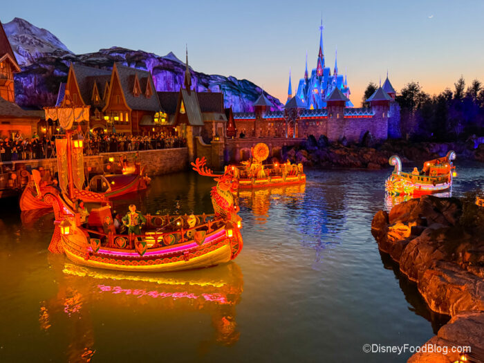 We got to see A Celebration in Arendelle, a fun boat show that happens on the fjord in front of Arendelle Castle.