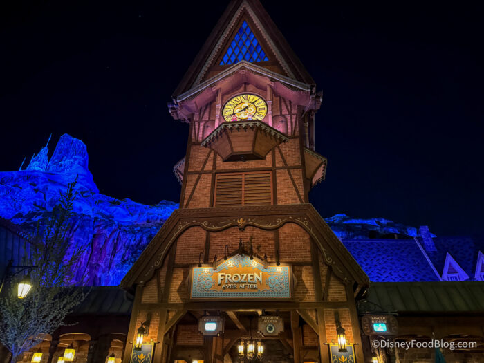 Of course, this is where you’ll find Frozen Ever After, the ride we’re sure we’ve ALL ridden in EPCOT. It was down for a large part of the day while we visited, but later on in the evening, we got to ride!