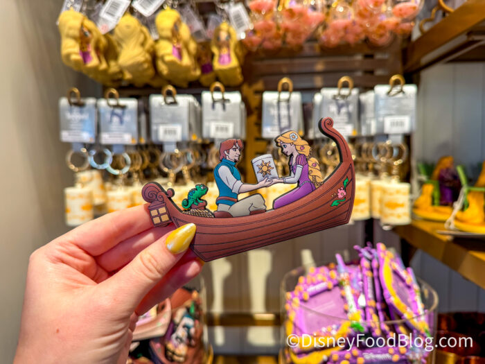 Let’s just get right into the merch, because there are so many things we’re falling in love with! Fans of Tangled are going to be so happy to find items like this magnet, capturing the iconic moment when Flynn and Rapunzel see the floating lanterns.
