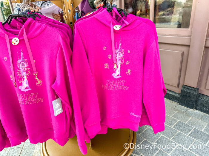 They had some clothes for fans of the iconic Disney Princess. We loved this hoodie with Rapunzel’s tower on it. It also featured lanterns and the phrase “Paint Your Story”.