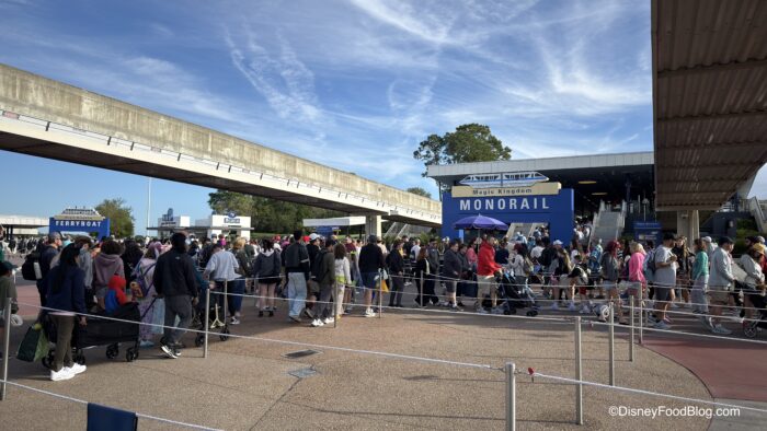 The line for the monorail at the Transportation and Ticket Center was just brutal. The ferry wasn’t any better, so it was really just a pick-your-poison situation. You can see how far the line really went for the monorail, and there were still people behind us. It’s been a WHILE since we’ve seen it this crowded.