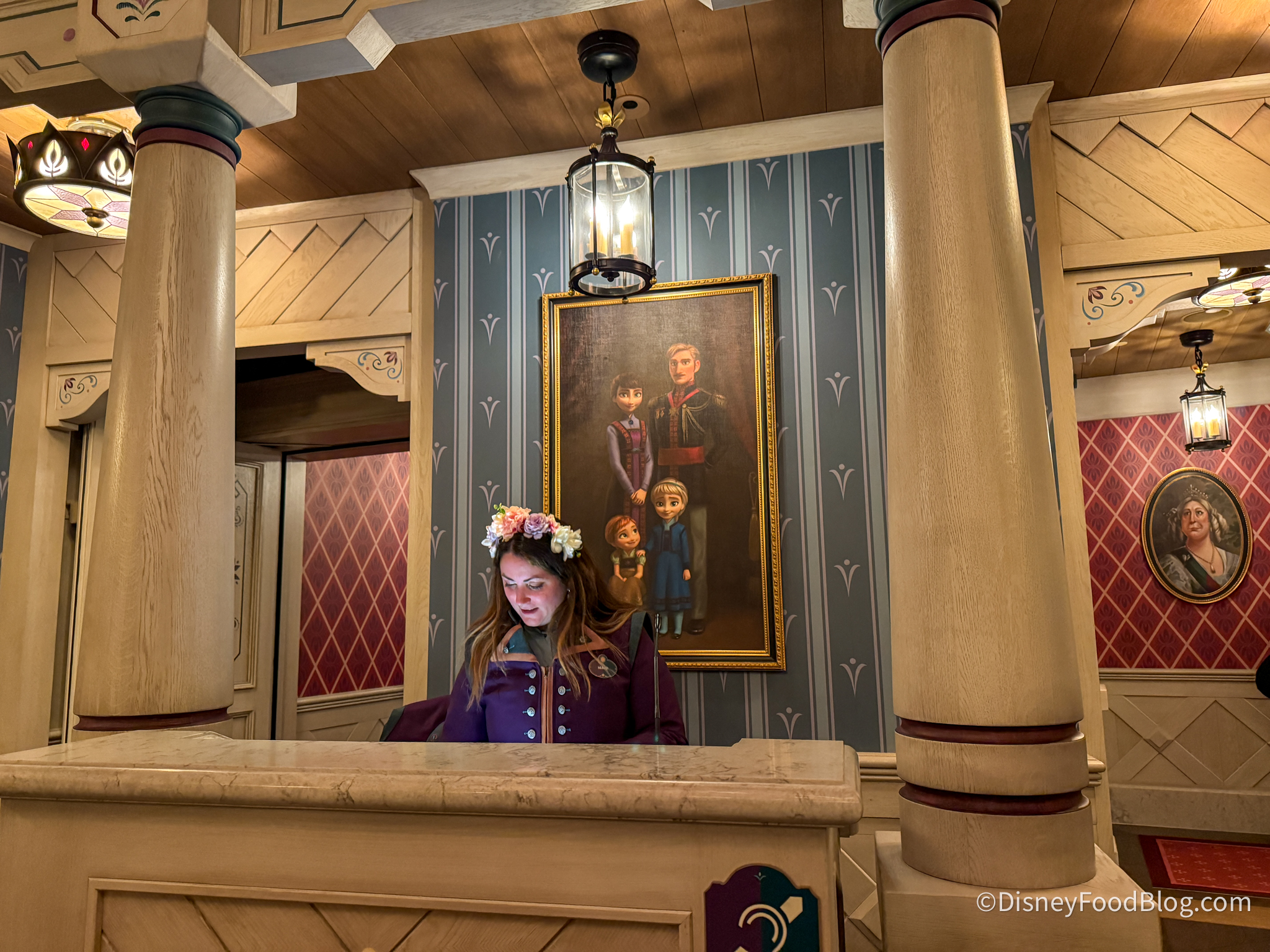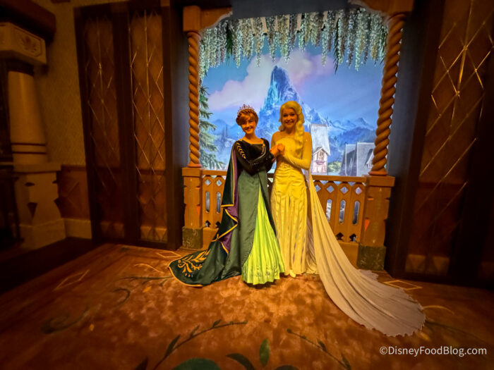 …and then you’ll be directed to one of three doors to meet Anna and Elsa together! We have a feeling this will be a VERY popular meet and greet, but those three doors will help things move relatively quickly. However, it’s important to note that when this experience officially opens on March 29th, it’ll require a Virtual Queue!