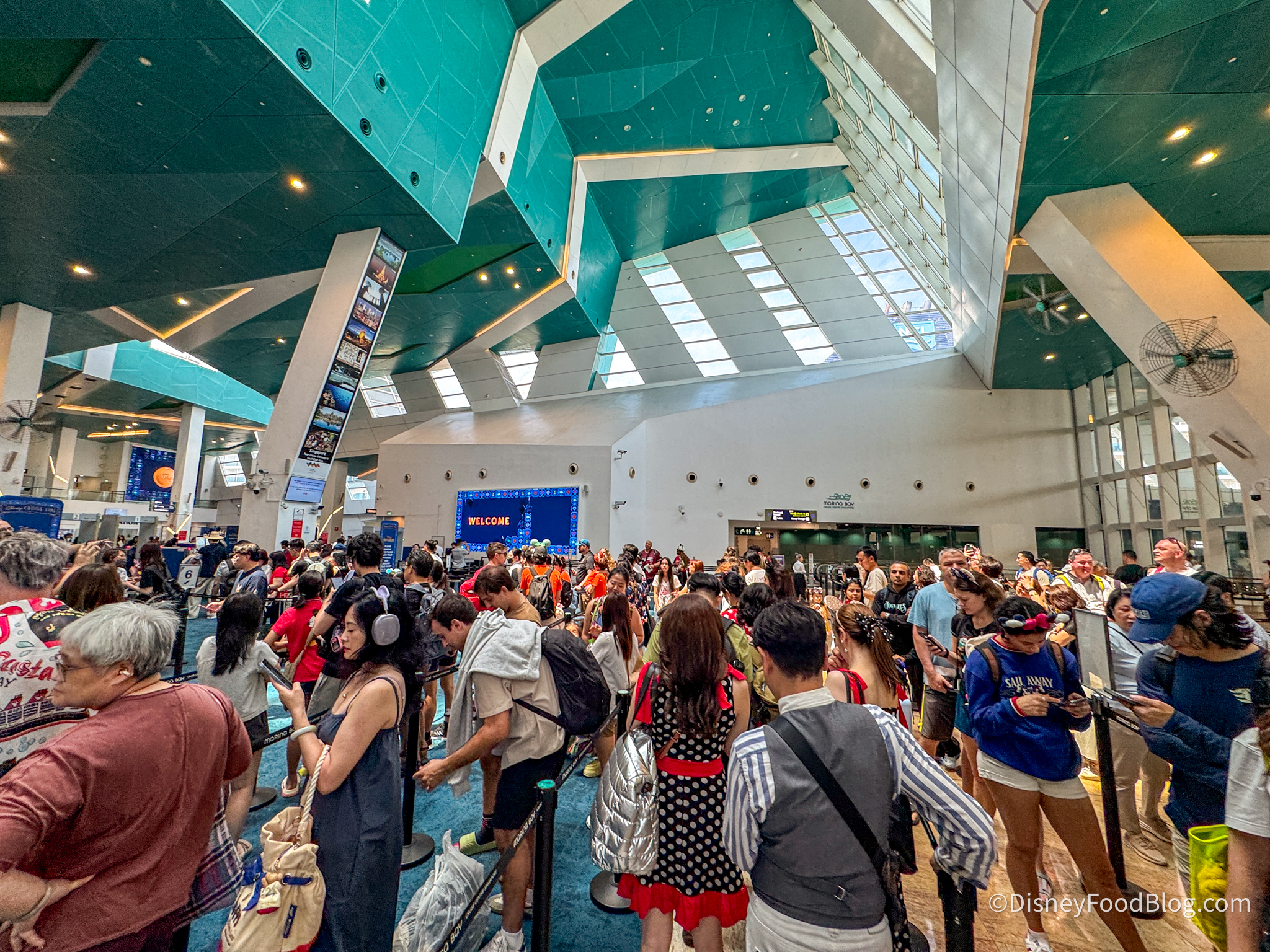 The Disney Adventure sets sail from Singapore and cruises through Southeast Asia on 3 and 4-night voyages. Before you can get on the ship, though, you’ve got to check in at the port, and in Singapore, things are different than in the United States. Now that we’ve had a chance to check it out, we have lots of pics and tips to share with you!
