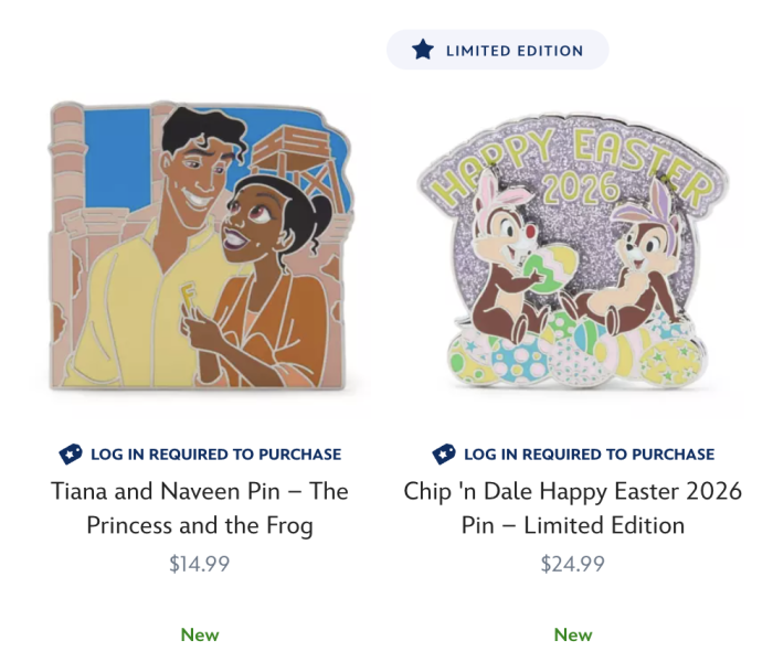 Another Princess and the Frog pin! This one is for Tiana and Naveen as they look forward to building their restaurant. Of course, there’s an Easter 2026 pin featuring Chip ‘n Dale, too.