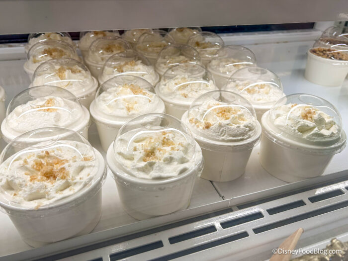 They’re served in little cups, and most of the top that’s visible is whipped cream. In fact, about half of the serving height was whipped cream. Once you get past that layer, there’s a layer of vanilla custard, which was sweet and lightly vanilla-flavored, but not too special overall.