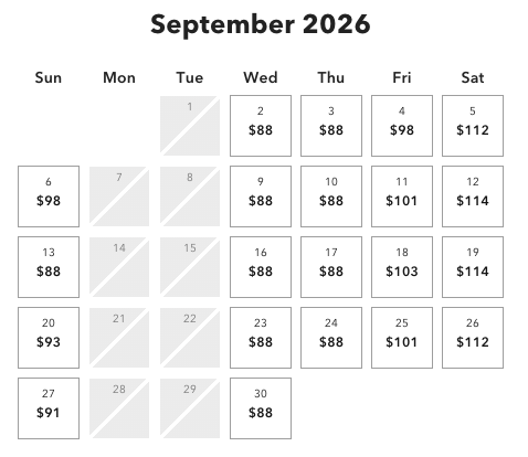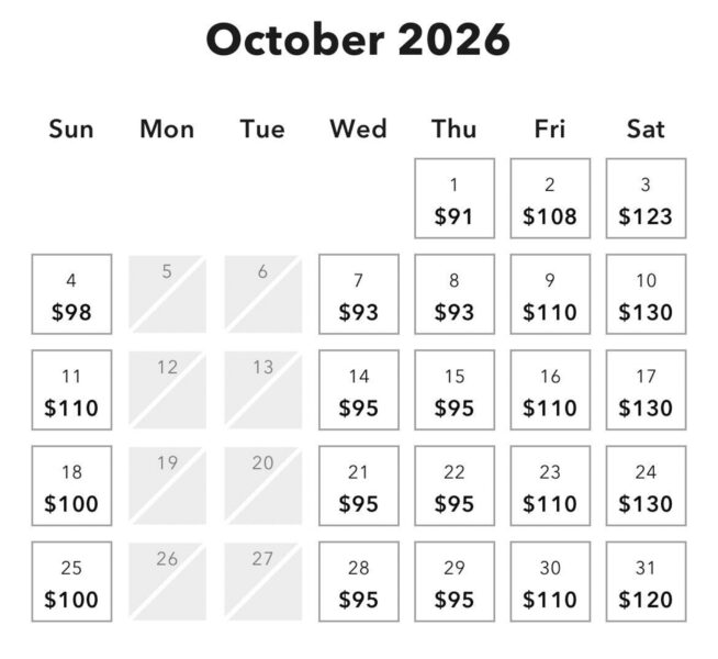 The schedule is the same for October: every Wednesday through Sunday. Ticket prices start to go up this month and range in price from $91 to $10. Note that it’s cheaper to go on Halloween than on the two Saturdays prior to Halloween.