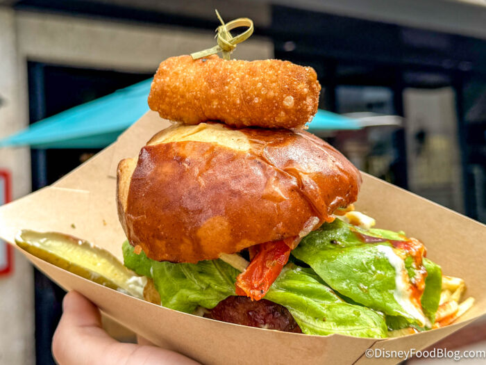 So when we saw they had a brand new burger, we had to try it! Spoiler alert: this is the most unique burger we’ve tried at Disney Springs.