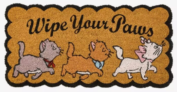 A doormat is one of those home details that’s easy to overlook until you see the right one. If you’re a fan of The Aristocats, this one is a hard yes. The Disney The Aristocats Wipe Your Paws Door Mat (BoxLunch Exclusive) features Berlioz, Toulouse, and Marie strutting in a line with their signature colorful bows, surrounded by a scalloped black border. The phrase “Wipe Your Paws” is written above them in elegant black script, which is equal parts witty and practical. It ships between May 19th and May 29th, 2026. Check it out before it disappears.
