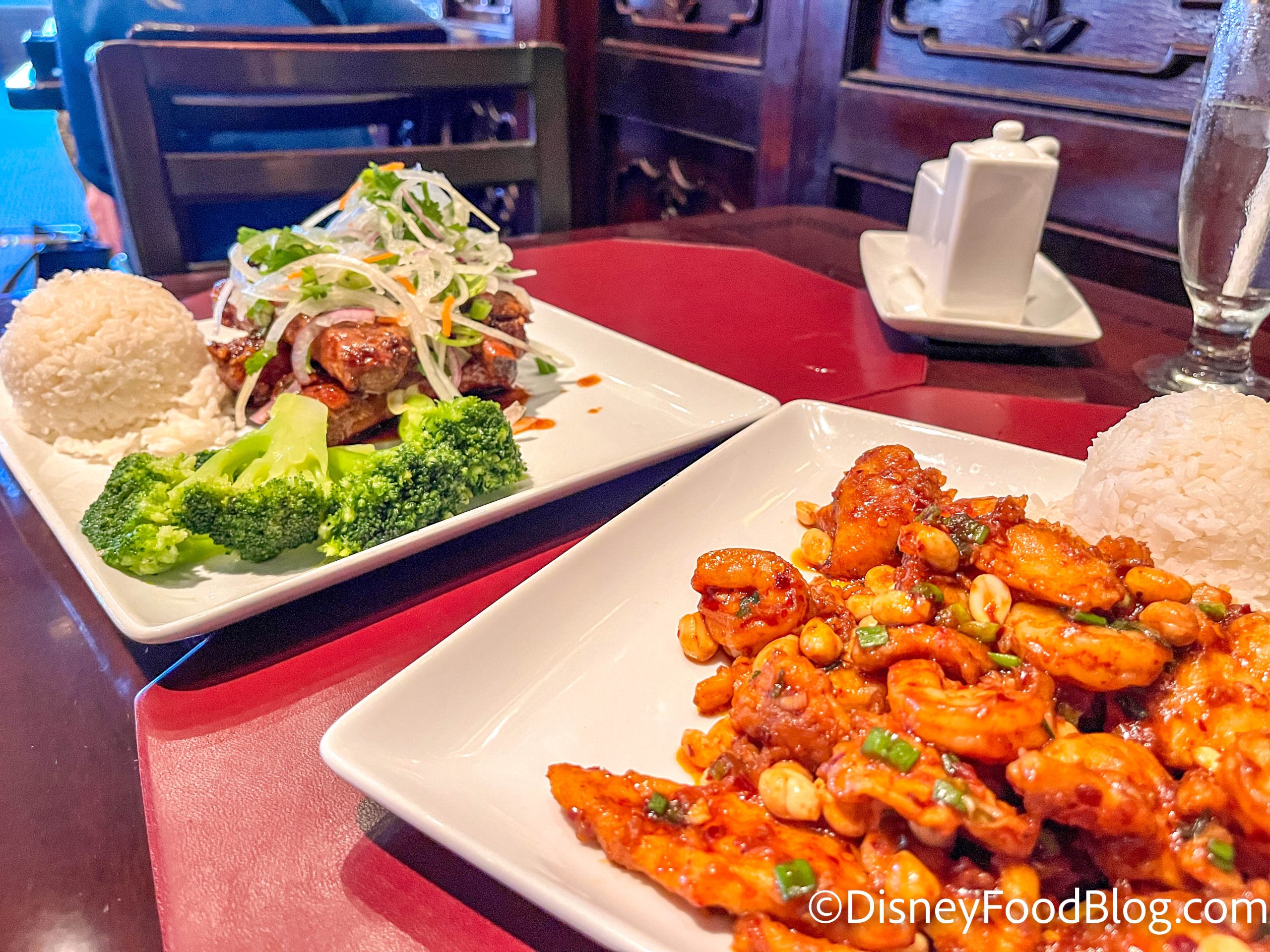 Nine Dragons is beautiful inside. It’s contemporary Chinese cuisine in an elegant dining room with traditional lanterns, wood carvings, and glass artwork, and yes, that part absolutely delivers. It’s a lovely space. But experts skip it because, in the harsh fluorescent truth of day, this is often the easiest EPCOT reservation to talk yourself out of.