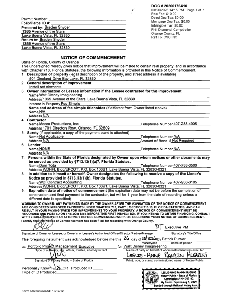 The contractor on the permit is Mecca Productions, LLC, which is a “full-service design, fabrication, and installation firm” located in Central Florida, according to their website. They’re brought on to create both props and scenery for theme park attractions, museums, corporate events, and more. Their website also mentions some of the companies they’ve worked with, which include, but aren’t limited to, Disney, NBCUniversal, Disney Cruise Line, SeaWorld, Dollywood, Busch Gardens, Google, The Food Network, and more.