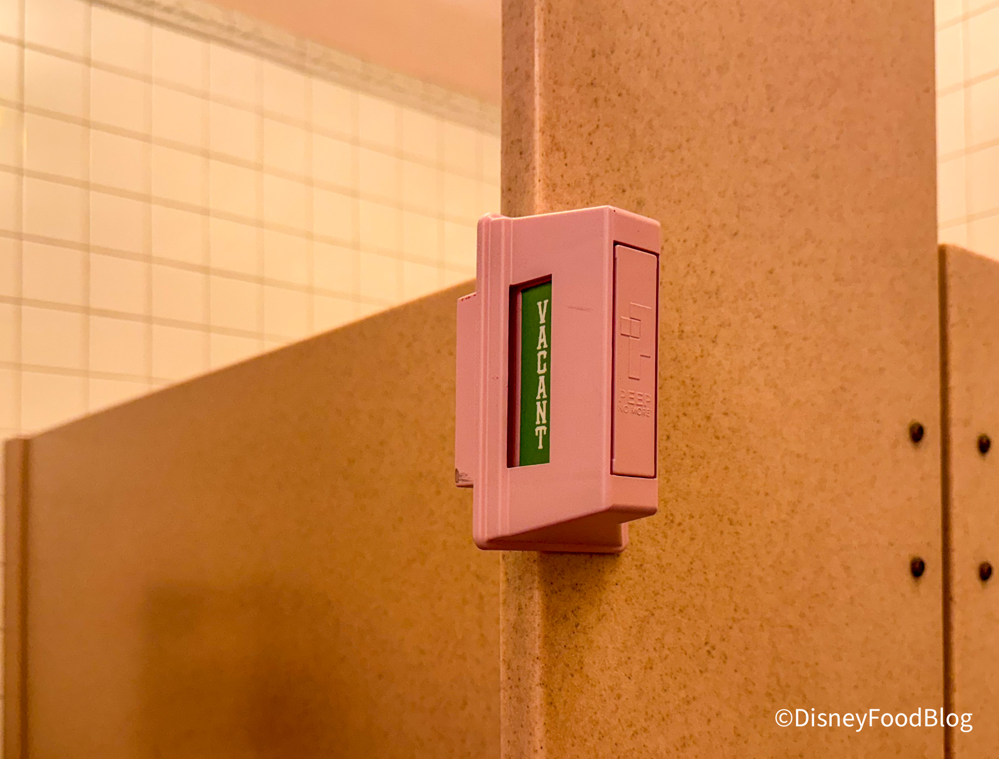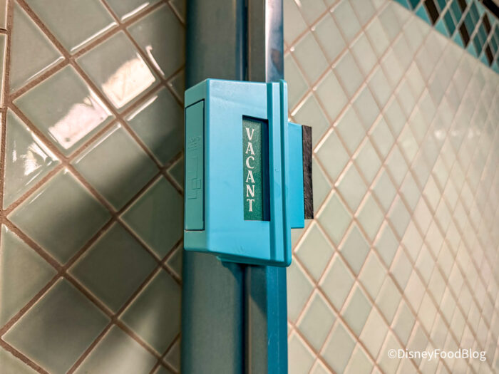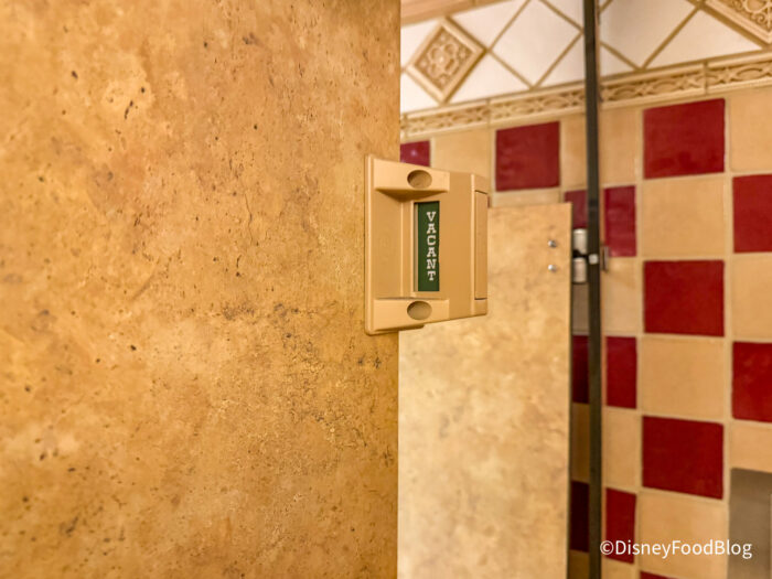 Heads up, Disneyland fans! New bathroom vacancy signs are popping up on stalls around Disneyland Park. We’ve seen similar signs at select bathrooms in Disney World, but we’re happy to see them come to Disneyland as well. So far, we’ve spotted them in the Main Street, U.S.A. bathrooms by Carnation Cafe…