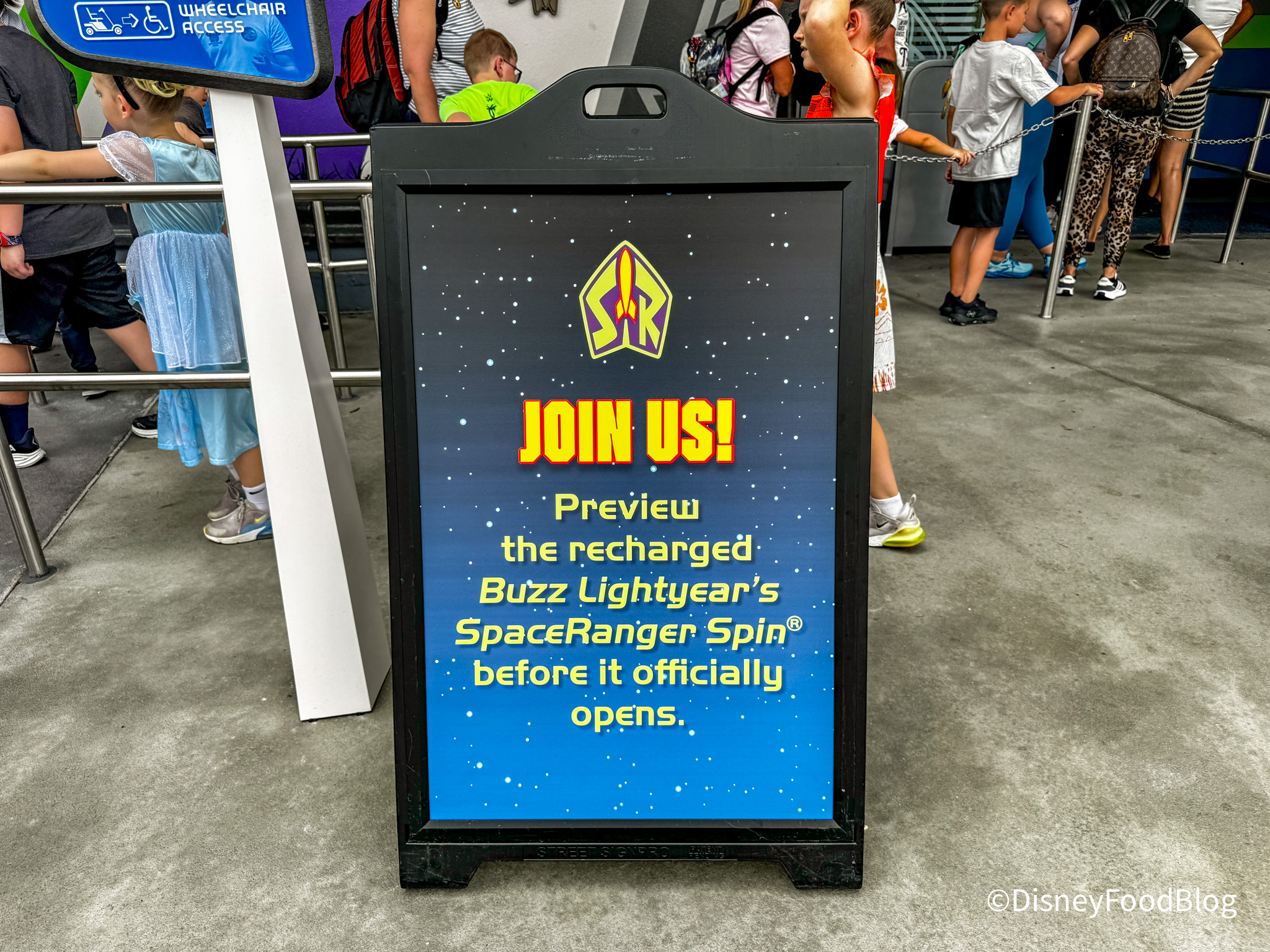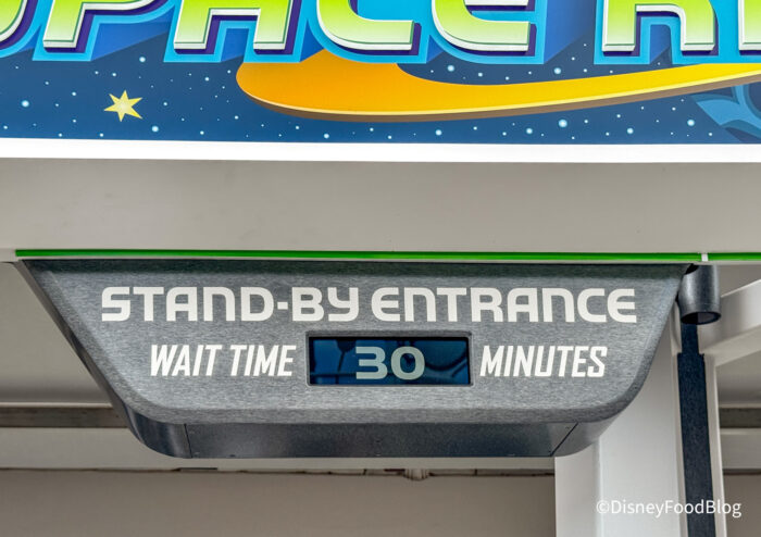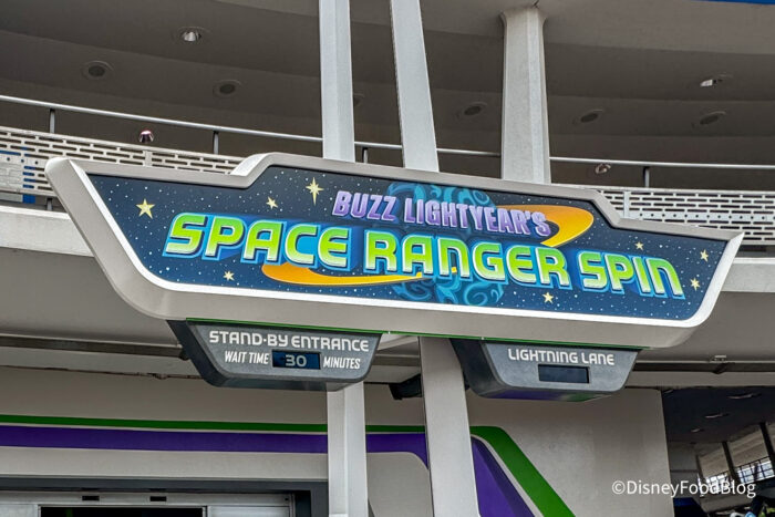 Since the ride is still in a soft opening phase, it may not be fully open until April 8th, so your best bet is to check the Disney World app daily to see if it’s an option before you make a special trip to the park just for Buzz. When we stopped by, the wait was around 30 minutes, but of course, that can change at any moment — especially once people start finding out about the soft opening!