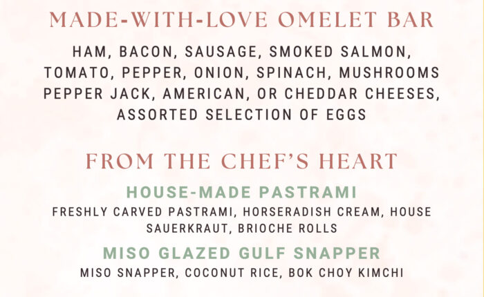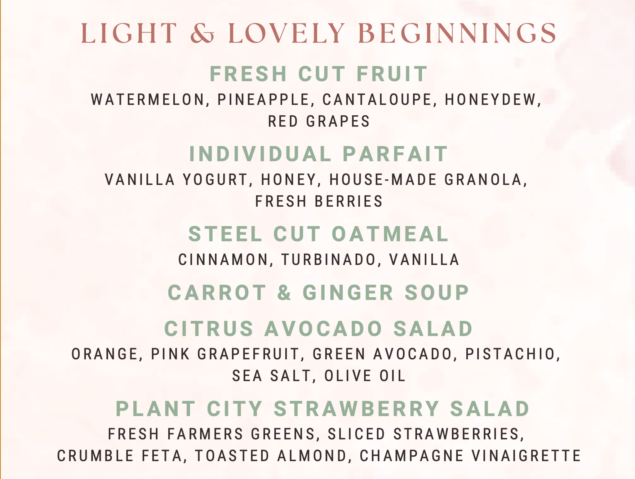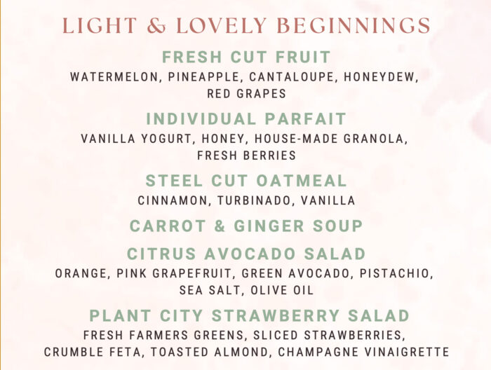 The Garden Grove’s brunch offering will feature a selection of breakfast items, including fruits, parfaits, oatmeals, and salads…