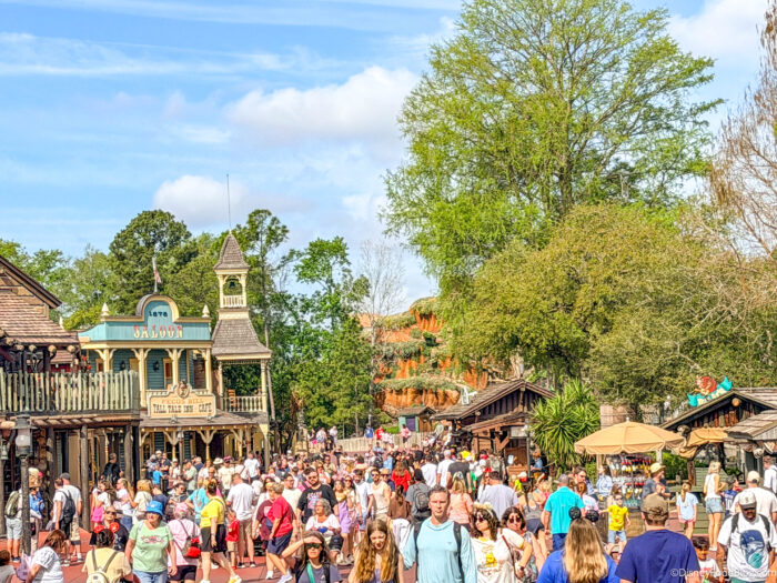We took a lap around Magic Kingdom on the morning of Tuesday, March 31st to see what the crowds were like, and boy were they a little overwhelming. Here’s a shot of Frontierland with everyone heading to their next to-do list item!