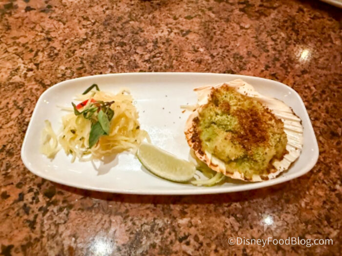 Next up was the Green Tai Curry Baked Bay Scallops for $16. This is made with macadamia nuts, green papaya, and Thai basil.