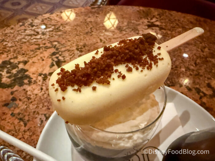 Now THIS is a fun way to do a root beer float! It has a great crunch on top thanks to those earthy Tahitian beans, but if you’re worried about those, just dunk the popsicle in the root beer, and they’ll be nothing more than an afterthought! A couple of different servers reiterated that there’s no right or wrong way to enjoy this dessert, so I dunked it and turned it into a classic float.