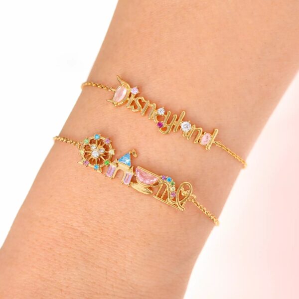 This bracelet features “Disneyland” in that iconic font, adorned with additional jewels for added sparkle. It’s a fun way to share your love for the original park with a gorgeous 18k gold finish.