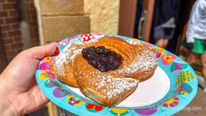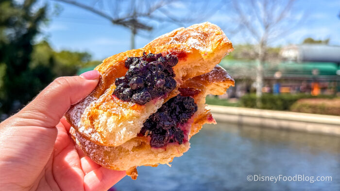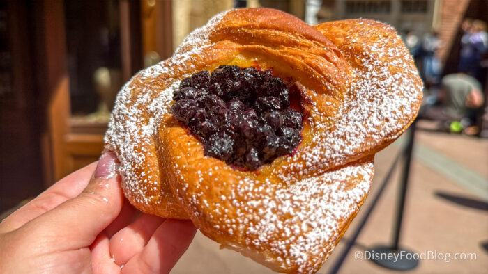 Our one small critique: the filling is concentrated in the center of the pastry rather than spread throughout. We would have loved for the lemon cream and blueberries to run through more of the pastry, so every bite had that full flavor combination. As it is, some bites are mostly pastry, and while the pastry is good, we wanted more of that lemon-blueberry punch throughout. Definitely something to keep in mind as you eat through it strategically.