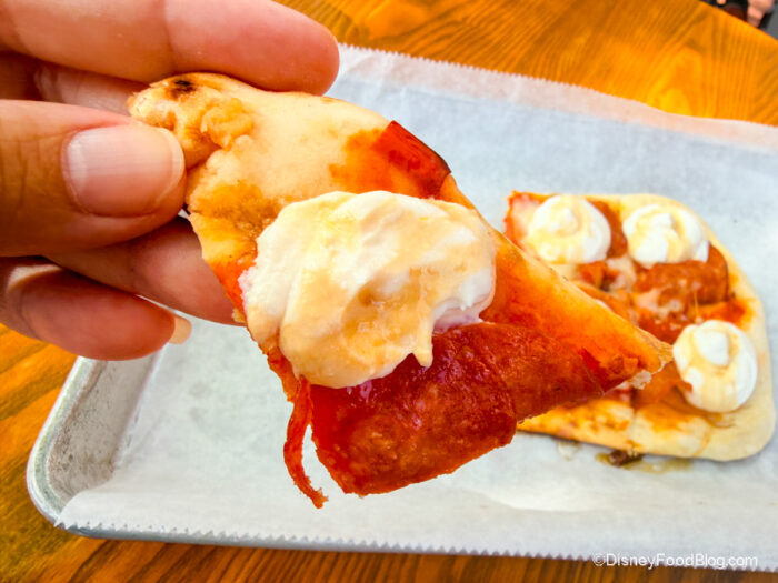 We do have a word of warning, though. Each flatbread is made to order (they’re super fresh), so you may have to wait a bit after you order it before it’s ready to be picked up. But it’s totally worth it. If you’re craving pizza in Disney’s Hollywood Studios, you’ll want to give it a try.