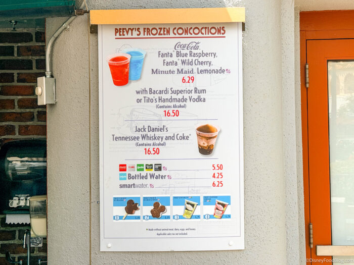 The menu here is fairly limited, with a few different slush options, as well as some alcoholic versions. You can also buy bottled drinks and ice cream novelties.
